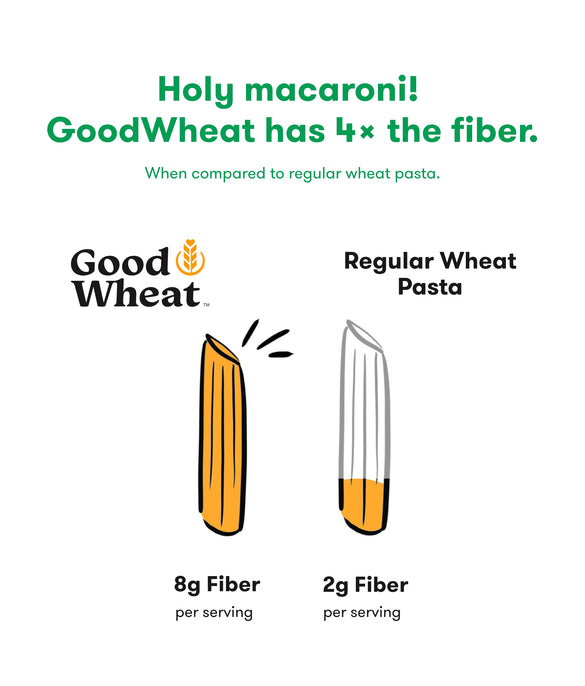 Made by pasta lovers for pasta lovers, GoodWheat tastes amazing, AND it’s better for you. That’s because our GoodWheat is naturally more nutritious with 4x more fiber than regular pasta, so it fills you up and keeps you going.